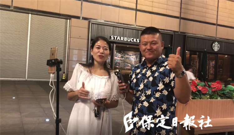 一樣的時(shí)刻,走在深夜的萬博廣場(chǎng),原本以為,會(huì)寂靜到只能聽到自己的呼吸和腳步。遠(yuǎn)處一對(duì)男女歡快的調(diào)侃聲由遠(yuǎn)及近,一條普通的長(zhǎng)凳邊,三腳架支起一部手機(jī),鏡頭對(duì)面的兩個(gè)人,是快手主播“蜻蜓哥”和“瑪雅”。二人得知記者正在進(jìn)行保定十二時(shí)辰的采訪報(bào)道,便帶領(lǐng)自己直播端那邊的幾萬名在線粉絲預(yù)祝記者采訪成功,“蜻蜓哥”親切地對(duì)記者說:“我是東北人,來到保定兩年了。保定太好了!保定人特別熱情!”