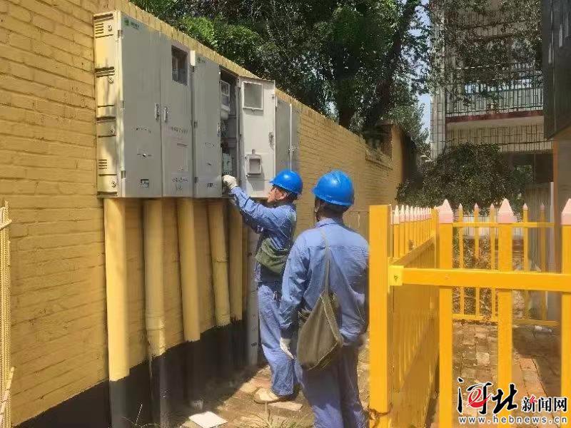 8月22日,國網保定清苑供電公司員工在白團小學對學校用電設施進行檢查維護。