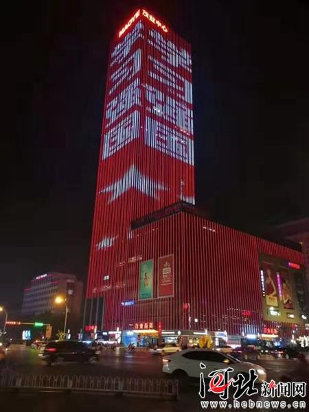 夜幕降臨,“學(xué)習(xí)強(qiáng)國”霓虹燈點(diǎn)亮保定地標(biāo)建筑茂業(yè)百貨大樓。