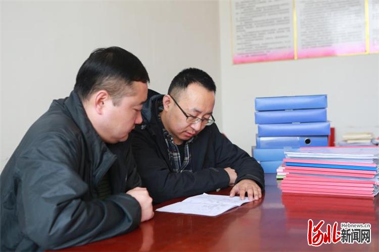 圖為張子成(右)與駐村工作隊成員一起研究最新扶貧政策。
