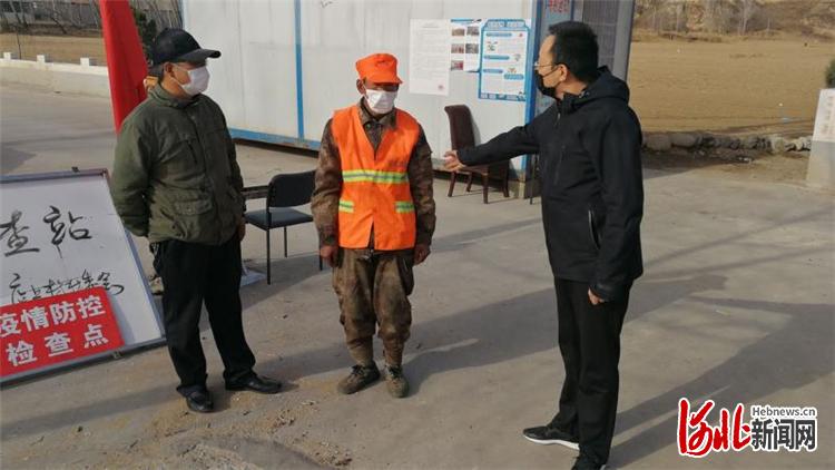 圖為張子成(右一)與村民一起在村口站崗執(zhí)勤,為出入村民測溫登記。