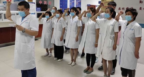 圖為昌盛醫(yī)院醫(yī)護人員在莊嚴宣誓:健康所系,生命相托!我將竭盡全力……