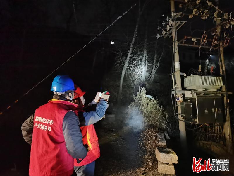 1月5日,阜平供電公司天生橋供電所員工進行夜間特殊巡視、紅外測溫工作,積極應對大風降溫天氣。 郝成學攝