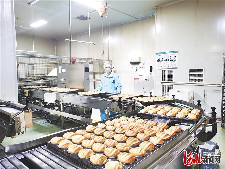 近日,在河北馬大姐食品有限公司烘焙食品車間,工人在流水線旁有序工作。通訊員李航攝