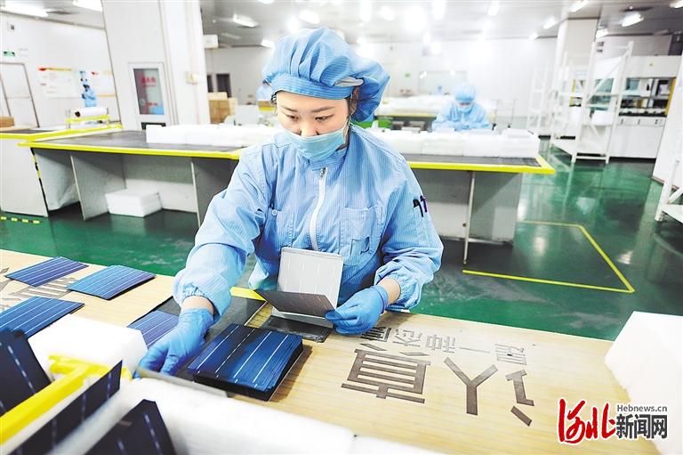 日前,英利公司電池車間員工正在進行電池片色差分選。 通訊員劉寧攝