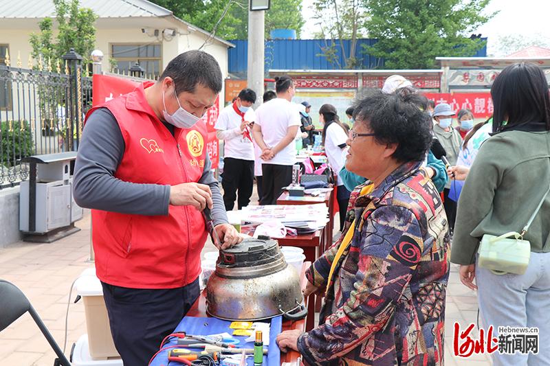 在東城坊鎮(zhèn)寧村,義務(wù)維修家電的攤位最為火熱。村民何阿姨的電飯鍋壞了,送去城里維修路途又遠。來自勁松圈義工聯(lián)合會的程師傅介紹說:“10元以下的零部件我們免費維修,您這個鍋我們修了不要錢!边呅捱吿嵝押伟⒁倘绾伪pB(yǎng)電器。