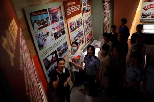 圖七 實踐團在西高社區(qū)黨史館聽講解員張琪講述“家教、家風、家訓”故事