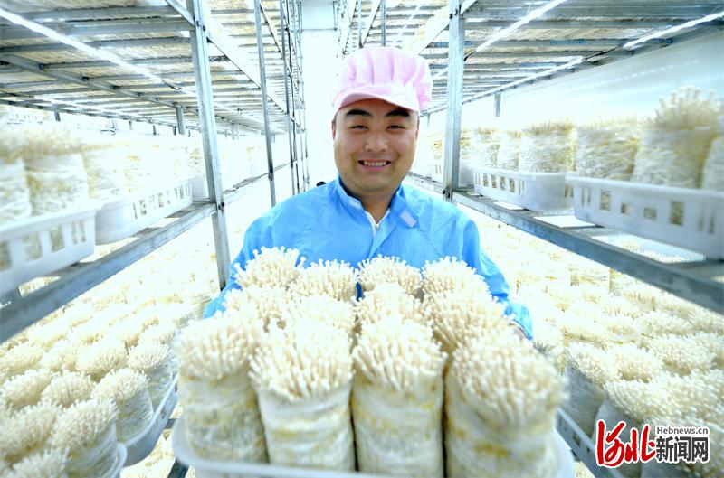 在淶水縣華益菇業(yè)有限公司,工作人員正在搬運(yùn)金針菇。淶水融媒供圖