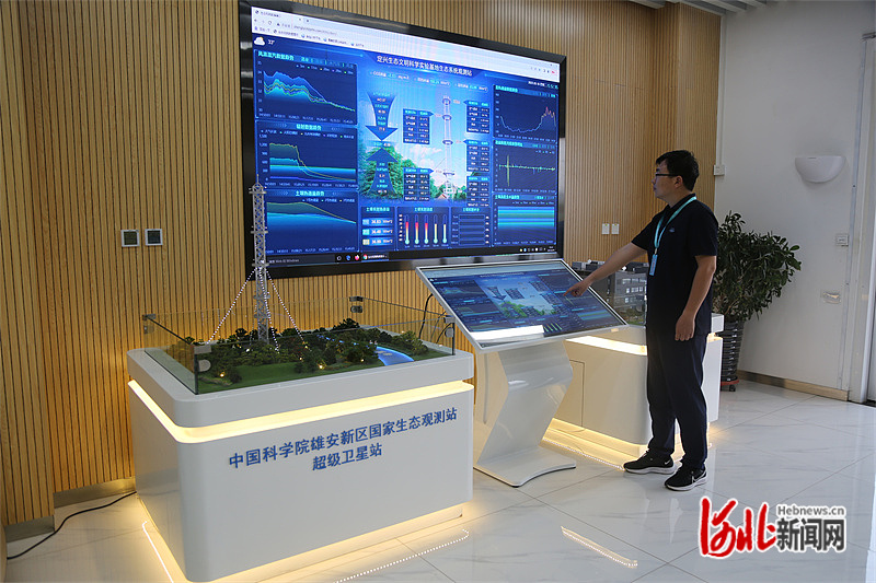 圖為在定興生態(tài)文明科學(xué)實(shí)驗(yàn)基地生態(tài)系統(tǒng)觀測(cè)站的大數(shù)據(jù)可視化平臺(tái),工作人員正在查看數(shù)字信息。通訊員 張洋攝
