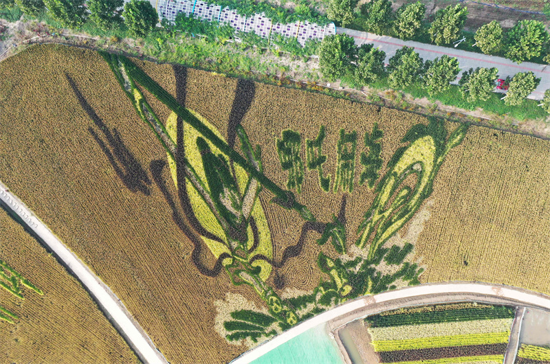 保定市徐水區(qū)神農現(xiàn)代農業(yè)示范園里的稻田畫(9月27日攝,無人機照片)。