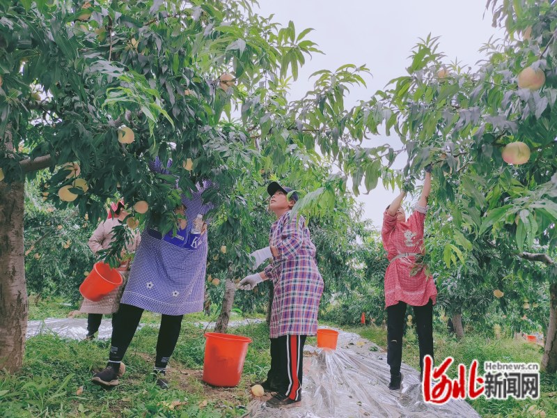 圖為曲陽縣孝墓鎮(zhèn)桃花峪壽桃采摘基地豐收現(xiàn)場。通訊員唐笛攝