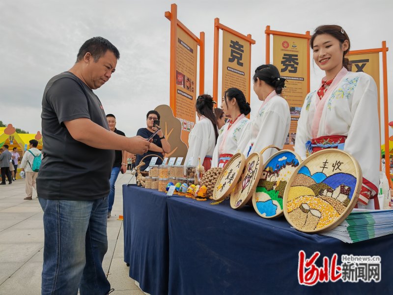 圖為競秀區(qū)慶祝農(nóng)民豐收節(jié)現(xiàn)場,市民在種子展臺前拍照。河北日報記者李連成攝