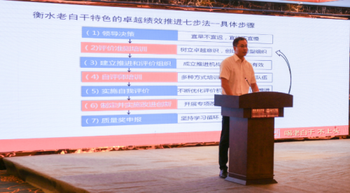 榮獲全國質(zhì)量獎企業(yè)-衡水老白干酒業(yè)有限公司大區(qū)負(fù)責(zé)人劉偉分享了企業(yè)高質(zhì)量發(fā)展之路,及卓越績效的實施步驟,講述了衡水老白干的全國質(zhì)量獎申報及企業(yè)發(fā)展歷程。