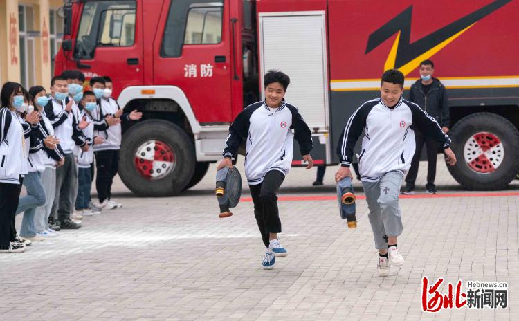 2022年5月10日,在河北省黃驊市李村中學(xué)學(xué)生在進(jìn)行消防技能比賽。通訊員張國文攝影報(bào)道