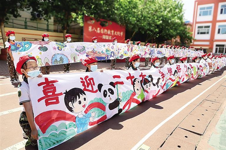 日前,運(yùn)河區(qū)光明小學(xué)舉辦“紅領(lǐng)巾心向黨 喜迎二十大”繪畫(huà)活動(dòng)。學(xué)校大眼睛涂鴉社的隊(duì)員們進(jìn)行了百米長(zhǎng)卷繪畫(huà),他們用雙手描繪出一件件飽含深情的作品,表達(dá)喜迎黨的二十大、爭(zhēng)做新時(shí)代好少年的美好心愿。