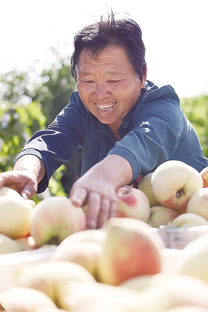 吳橋縣小天罡村的壽桃豐收了。 紀(jì)敏攝