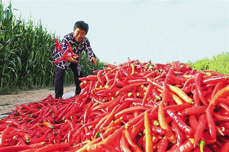 孟村邁旭牧業(yè)種植園區(qū)的辣椒豐收了。 劉冠一、楊洋攝