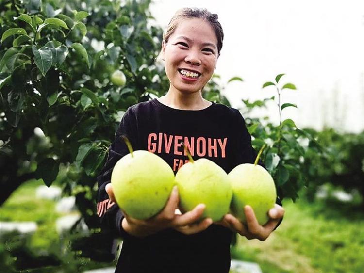 鹽山縣東田寨村的梨豐收了。 張文娟攝