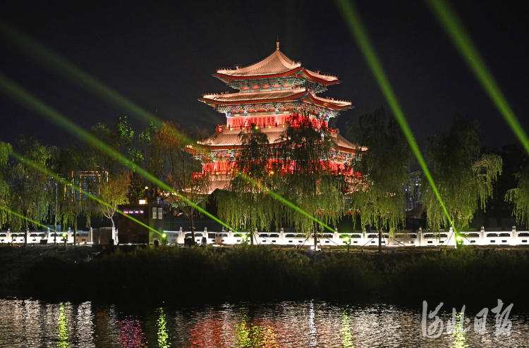 亮起來的大運(yùn)河為滄州市增添了一道美麗夜景。