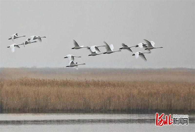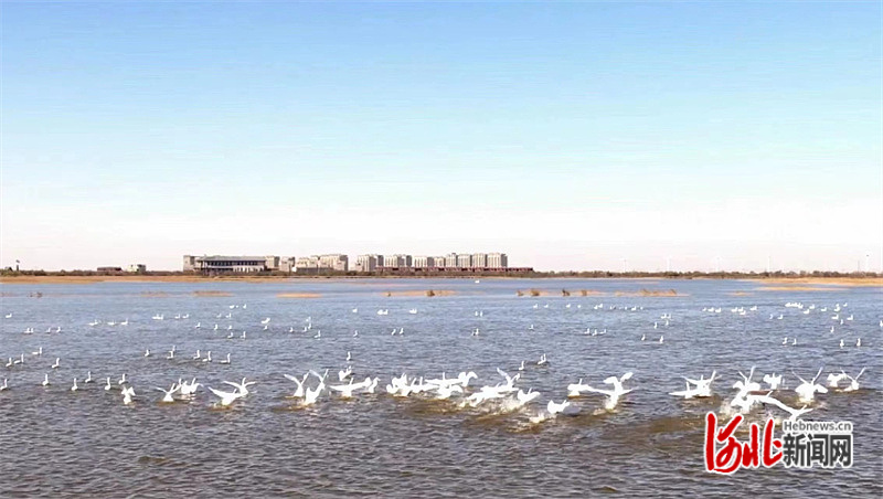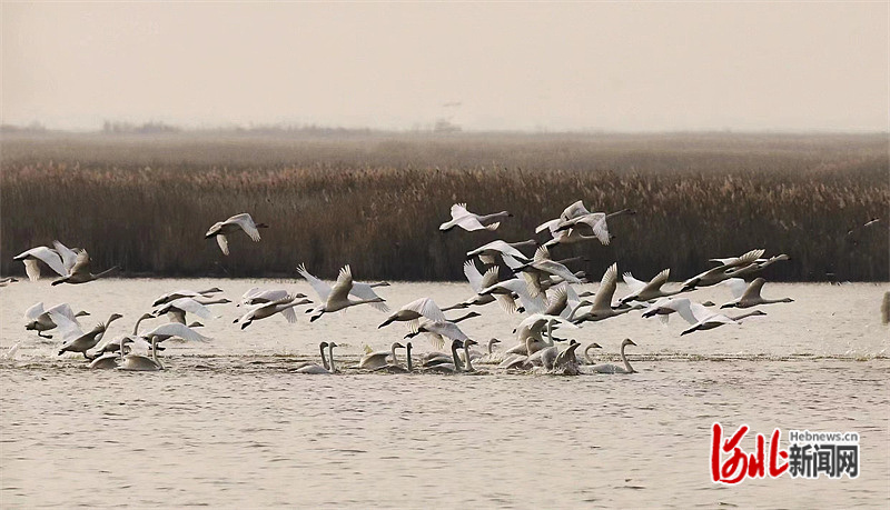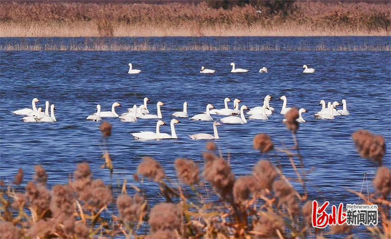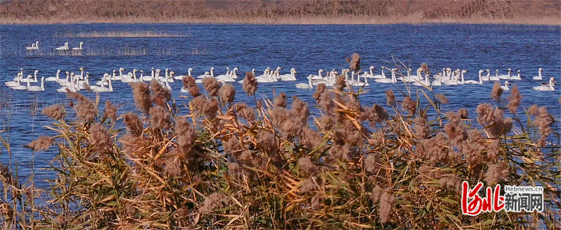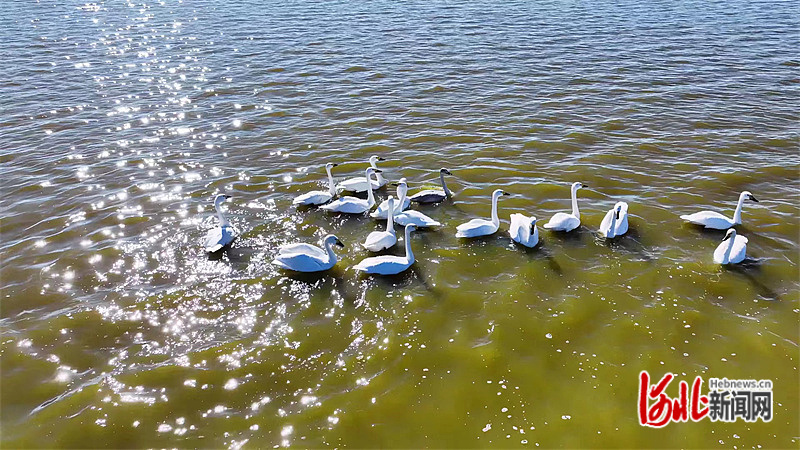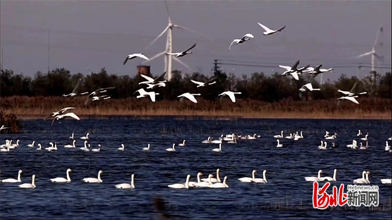 河北網(wǎng)訊(通訊員劉淑文、張景興)日前,近千只天鵝現(xiàn)身河北滄州南大港濕地,它們或自在覓食,或引頸鳴叫,為剛剛?cè)攵臐竦卦鎏砹艘坏漓`動的風(fēng)景。