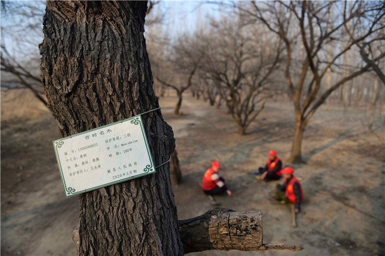 河北省獻(xiàn)縣孟各莊村有一座古桑園,里面有600多棵上百年樹齡的古桑樹。當(dāng)?shù)卣畬?duì)古桑園進(jìn)行了嚴(yán)格保護(hù),定期監(jiān)測(cè)古樹的長(zhǎng)勢(shì)、病蟲害和生長(zhǎng)環(huán)境,同時(shí)建立一支由熱心村民組成的巡護(hù)隊(duì)伍,確保古樹安全。新華社發(fā)(傅新春攝)