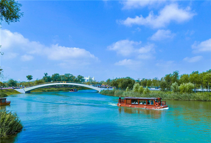為保障大運河滄州中心城區(qū)段順利通航,滄州市在2021年完成引水1.8億立方米的基礎(chǔ)上,今年上半年完成引調(diào)水3億立方米,不僅實現(xiàn)了大運河滄州段全線通水,也將沿線的風(fēng)景串珠成鏈、連點成片。同時,滄州市開展河道清淤疏浚,實施綠化提升工程,完善配套設(shè)施建設(shè),新建12座旅游碼頭和6座步行景觀橋,對8座現(xiàn)有市政橋梁進行了美化優(yōu)化。