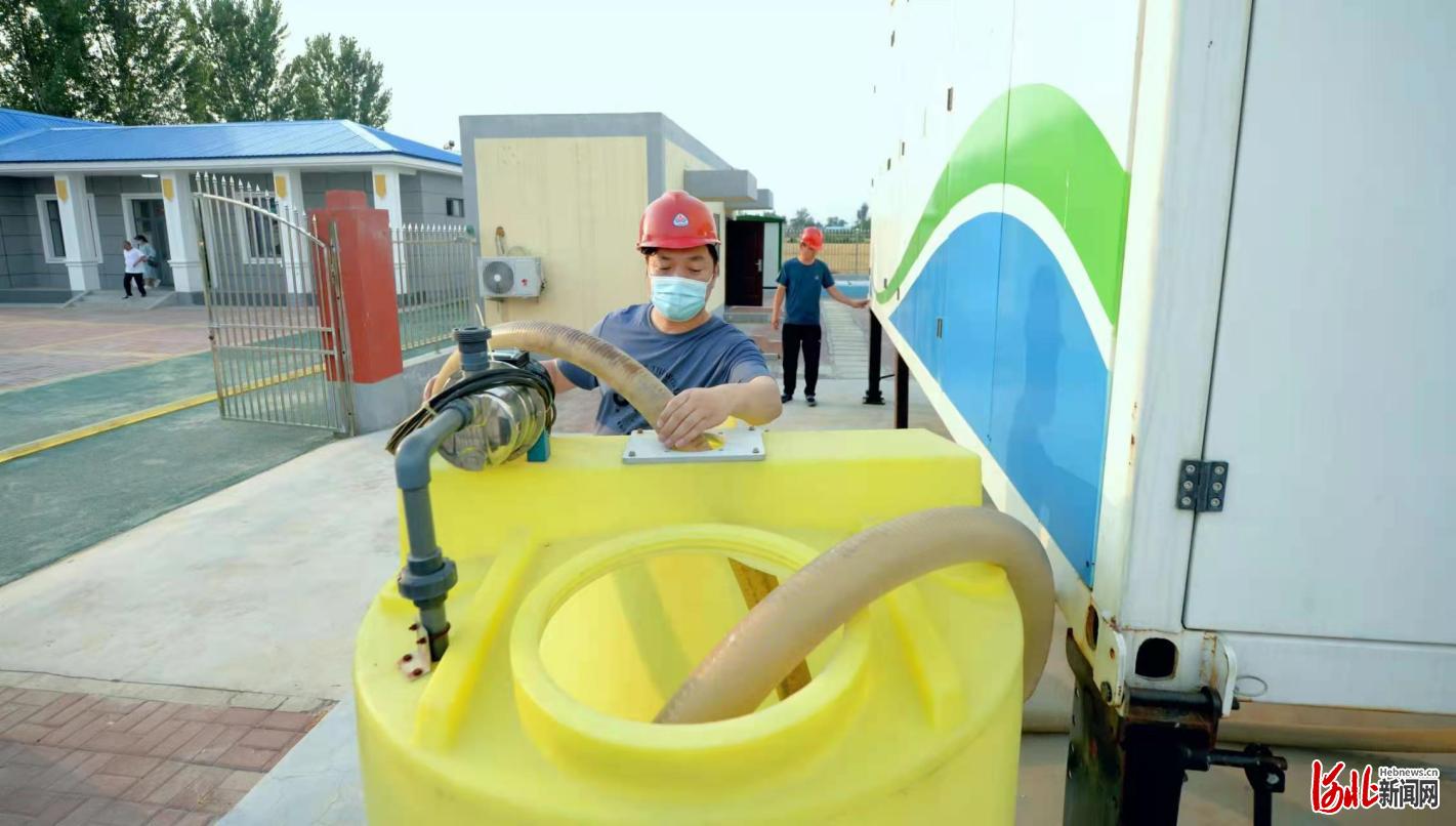 在吳橋縣曹洼鄉(xiāng)前李村污水處理站,工作人員操作污水處理設(shè)備。滄州市發(fā)改委供圖