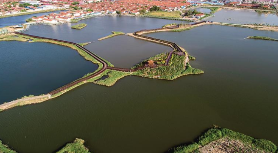 秉承自然、生態(tài)和節(jié)約理念,通過“引濕地入園”,對(duì)舊有坑塘加以擴(kuò)建、改造,再經(jīng)過一系列治鹽排堿措施,建成1600多畝的濕地型園林景觀。滄州渤海新區(qū)黃驊市近年在園林綠化方面不斷創(chuàng)新理念、克服困難,在鹽堿地上筑起綠色生態(tài)家園,一個(gè)美麗自然的生態(tài)城市躍然眼前。
