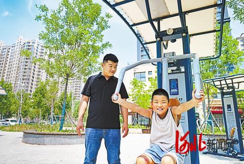 7月10日,位于滄州市永安南大道與康寧路交叉口附近的口袋公園內(nèi),市民正在使用健身器材。河北日報記者張昊攝