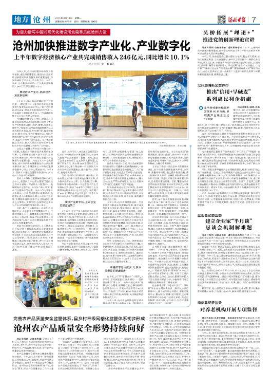 今年以來,滄州市把數(shù)字經(jīng)濟(jì)作為落實(shí)省委、省政府部署要求,推動(dòng)滄州經(jīng)濟(jì)實(shí)現(xiàn)創(chuàng)新驅(qū)動(dòng)和高質(zhì)量發(fā)展的重要途徑,加快推進(jìn)數(shù)字產(chǎn)業(yè)化、產(chǎn)業(yè)數(shù)字化。今年上半年,全市數(shù)字經(jīng)濟(jì)核心產(chǎn)業(yè)共完成銷售收入246億元,同比增長10.1%。