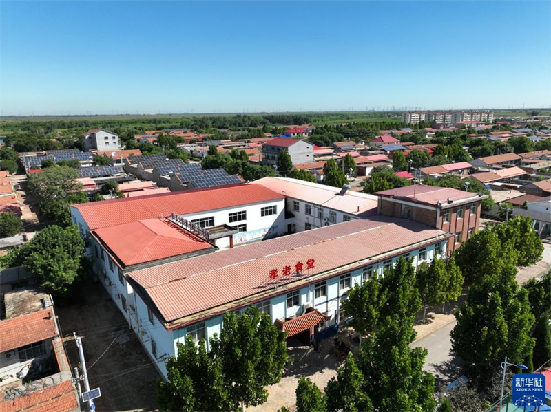 這是8月22日拍攝的青縣金牛鎮(zhèn)大鵓鴿留村孝老食堂(無人機(jī)照片)。