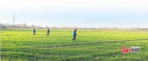 11月9日,記者在位于孫亮屯村的泊頭市聚萌源種植專(zhuān)業(yè)合作社內(nèi)看到,農(nóng)田里的冬小麥長(zhǎng)勢(shì)良好,理事長(zhǎng)魏根生查看完土壤墑情后,指導(dǎo)工作人員做好冬小麥管理。