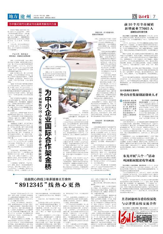 今年以來,滄州市全面加快中國中東歐(滄州)中小企業(yè)合作區(qū)建設,全力打造面向中東歐國家對外開放重要窗口。