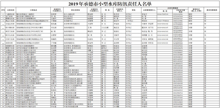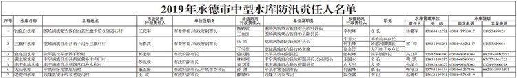 承德市防汛抗旱指揮部通報(bào)全市水庫(kù)防汛責(zé)任人名單