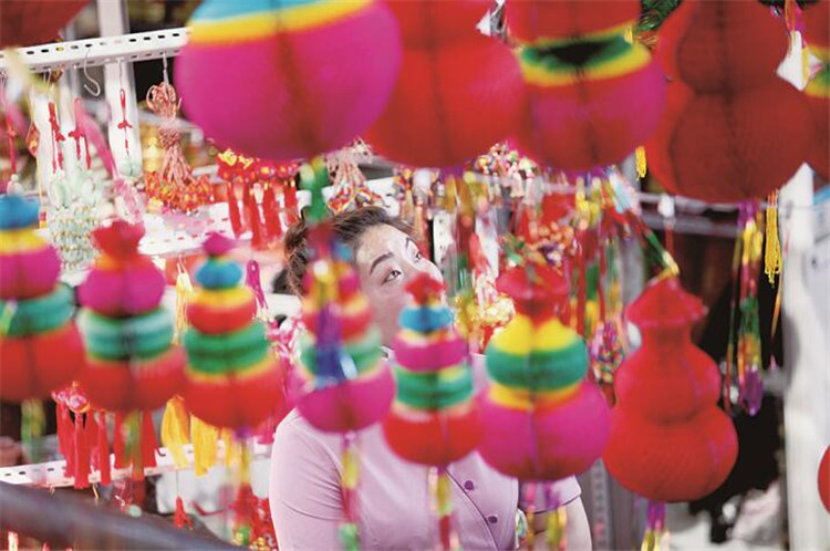 6月5日,承德市民在一家市場選購端午節(jié)傳統(tǒng)飾品。端午節(jié)是中國傳統(tǒng)四大節(jié)日之一,民間有掛葫蘆,佩戴荷包的習俗,這些“荷包”一般用綢布做成,內有帶香味的中草藥。承德市各大商場的端午節(jié)裝飾琳瑯滿目,營造出濃濃的節(jié)日氛圍。記者杜森攝影報道