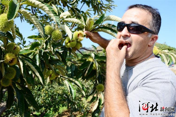 碾子峪鎮(zhèn)艾峪口村已舉辦了多屆板栗采摘節(jié),這是外國(guó)游客在采摘板栗。(資料片)通訊員趙生忠攝