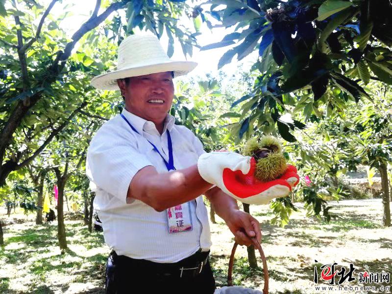 9月23日,承德市2019年中國農(nóng)民豐收節(jié)暨寬城第四屆板栗采摘文化節(jié)舉行。圖為體驗(yàn)板栗采摘的嘉賓。 記者陳寶云攝