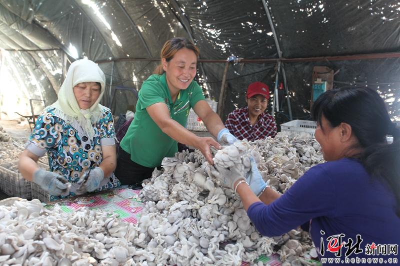 圍場(chǎng)在農(nóng)村黨員中推行“1+X”聯(lián)戶制度,由黨員帶頭成立食用菌種植合作社,帶動(dòng)群眾脫貧致富。這是近日工人在道壩子鄉(xiāng)食用菌種植基地分揀食用菌。 通訊員寧利勇攝