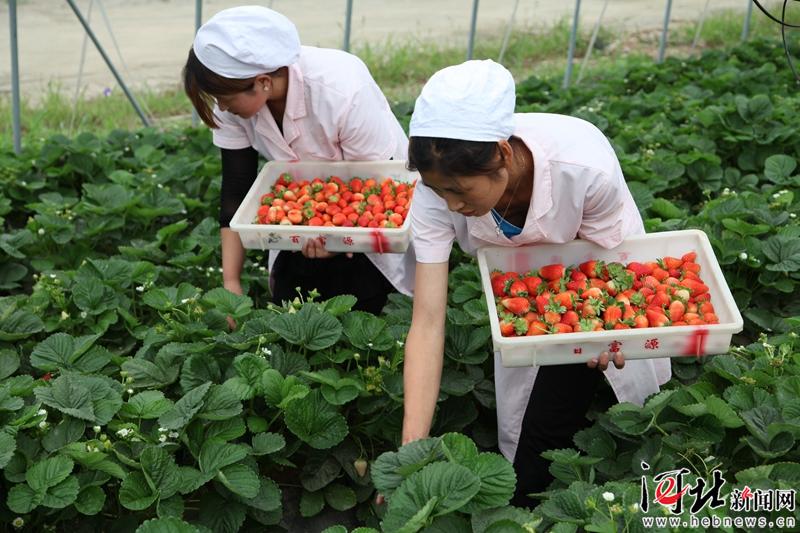 近年來(lái),隆化縣推廣“黨支部+”模式,把黨組織建在產(chǎn)業(yè)鏈上,實(shí)現(xiàn)黨建與脫貧互促共贏。這是近日工人在七家鎮(zhèn)西道村草莓基地采摘草莓。 通訊員楊闊攝