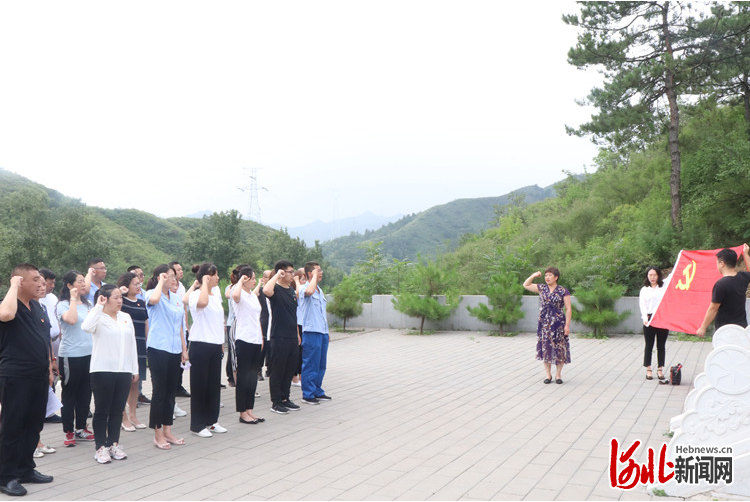 圖為參加祭掃活動的黨員干部正在重溫入黨誓詞。