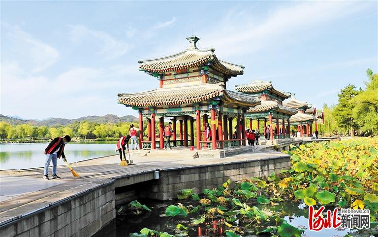 近日,承德市雙橋區(qū)的團(tuán)員青年志愿者來(lái)到避暑山莊,對(duì)景區(qū)內(nèi)的垃圾、漂浮物進(jìn)行清理,以實(shí)際行動(dòng)助力文明城市創(chuàng)建。圖為團(tuán)員青年志愿者在清理垃圾。 通訊員劉環(huán)宇攝影報(bào)道
