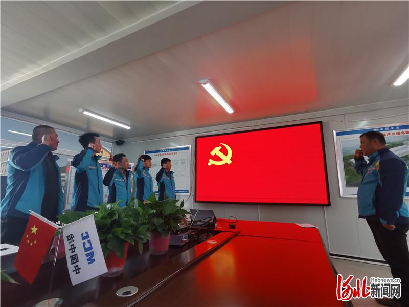項(xiàng)目部黨員正在重溫入黨誓詞。河北日?qǐng)?bào)記者陳寶云攝