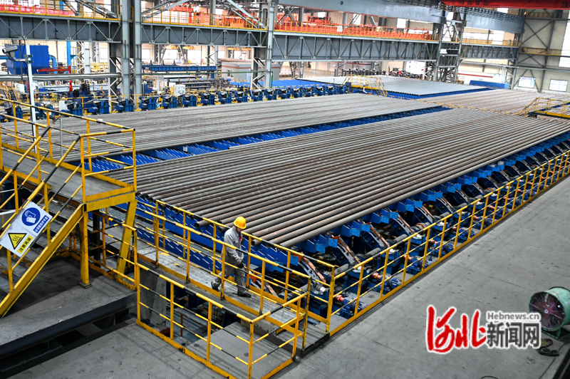 2023年11月28日,承德建龍?zhí)厥怃撚邢薰锯C鈦高科無縫鋼管生產(chǎn)車間。河北日?qǐng)?bào)記者陳寶云攝