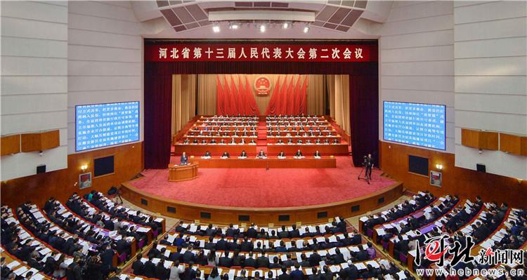 1月14日,省十三屆人大二次會議在省會河北會堂開幕。圖為會議現(xiàn)場。記者張昊