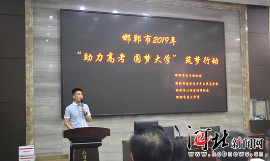 邯鄲市圓夢青少年發(fā)展基金會秘書長申江濤為學子加油。