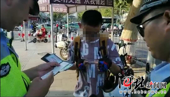 7月7日晚高峰,交警叢臺(tái)大隊(duì)一中隊(duì)民警在滏河北大街與叢臺(tái)路交叉口執(zhí)勤,一穿咖啡色T恤衫的男子駕駛一輛號(hào)牌為京BCXXX5的黃色踏板摩托車沿滏河大街由北向南行駛,突然見前方有執(zhí)勤民警,速度驟然放慢,神色慌張不自然,民警生疑立即上前查詢情況。