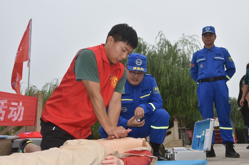 近日,廣平縣委網(wǎng)信辦組織自媒體聯(lián)盟成員在天鵝湖公園開展了預(yù)防青少年溺水宣傳活動;顒蝇F(xiàn)場,藍(lán)天救援隊隊員為廣大群眾示范溺水后應(yīng)該采取的急救措施,并邀請志愿者、學(xué)生家長進(jìn)行練習(xí),增強(qiáng)了群眾防溺水意識。劉書振 劉振國 攝
