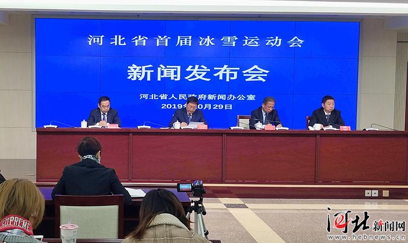 10月29日,河北省首屆冰雪運(yùn)動(dòng)會(huì)新聞發(fā)布會(huì)舉行。圖為發(fā)布會(huì)現(xiàn)場(chǎng)。  記者楊明靜 趙瑞雪攝