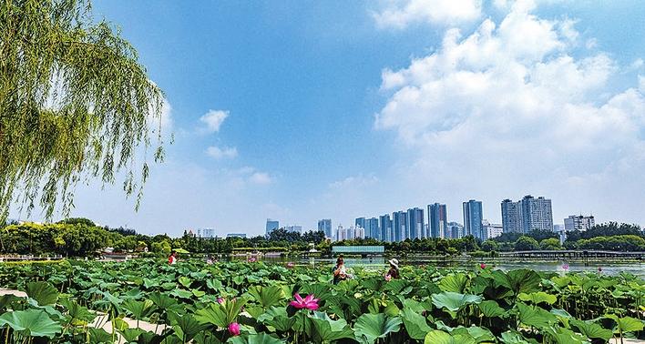近年來(lái),邯鄲堅(jiān)持綠色發(fā)展,加大環(huán)境治理力度,藍(lán)天白云天數(shù)越來(lái)越多。圖為龍湖公園 一景。(資料片) 邯報(bào)融媒體記者李嘯攝