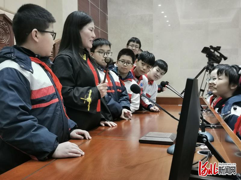 峰峰法院少年庭法官周俊英為學(xué)生們講解法槌在庭審中的使用方式。 通訊員崔瀟攝